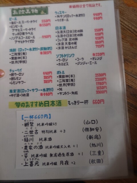 内観は 小ぢんまりしていて現在は L字型カウンター席10席、小上がり4人掛けテーブル席4人掛けテーブル席3卓、2階未確認ですが宴会席有り。