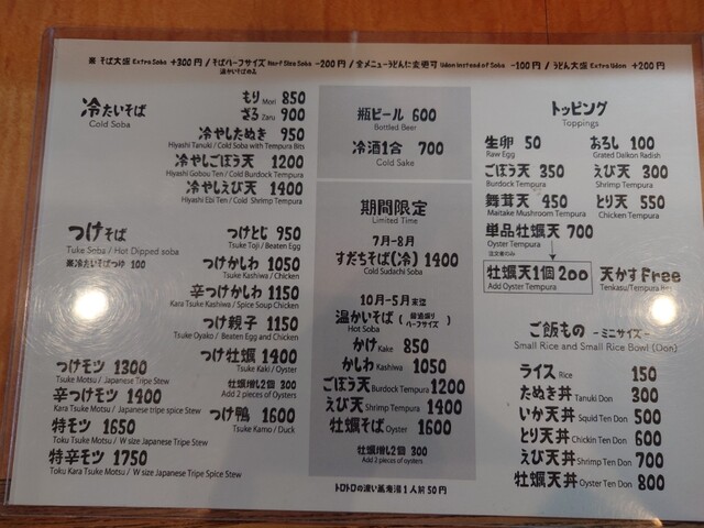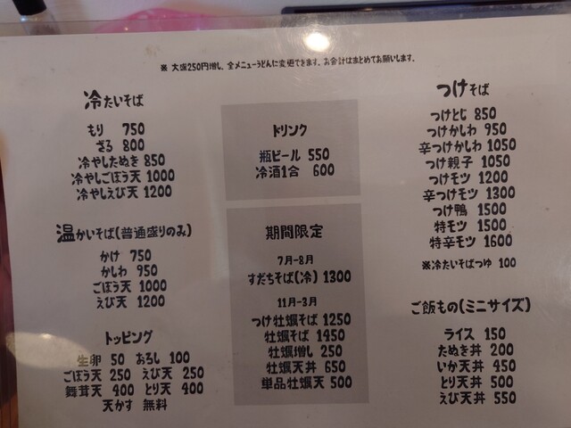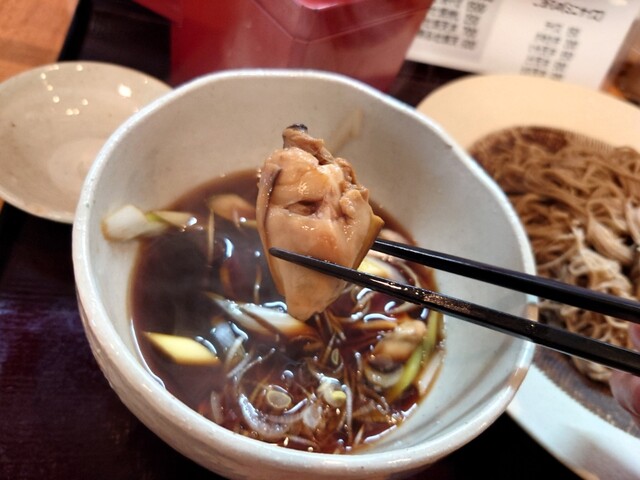 つけ牡蠣そば 1,300円、大盛り 250円(税込)。
