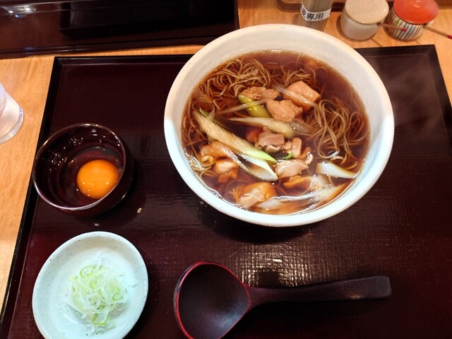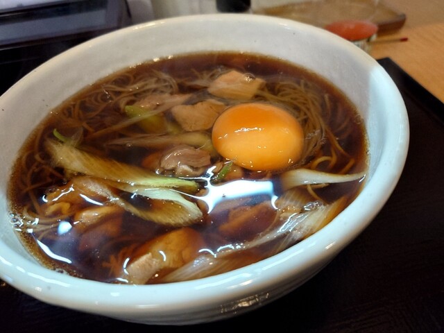 かけそば 800円、トッピング生卵 50円(税込)、天かす無料