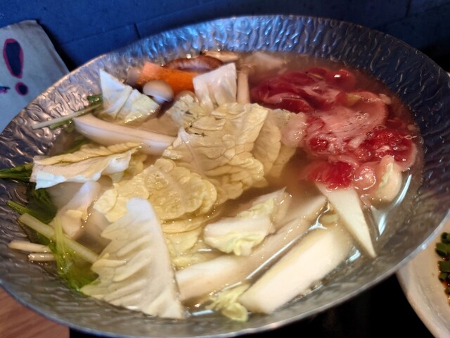 生ラムしゃぶしゃぶ 1,500円、野菜 500円