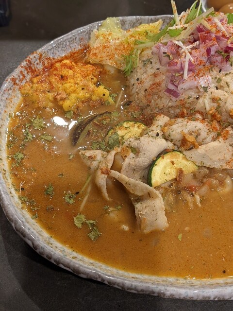 出汁とスパイスが上手く融合していてめちゃくちゃ美味しいです。