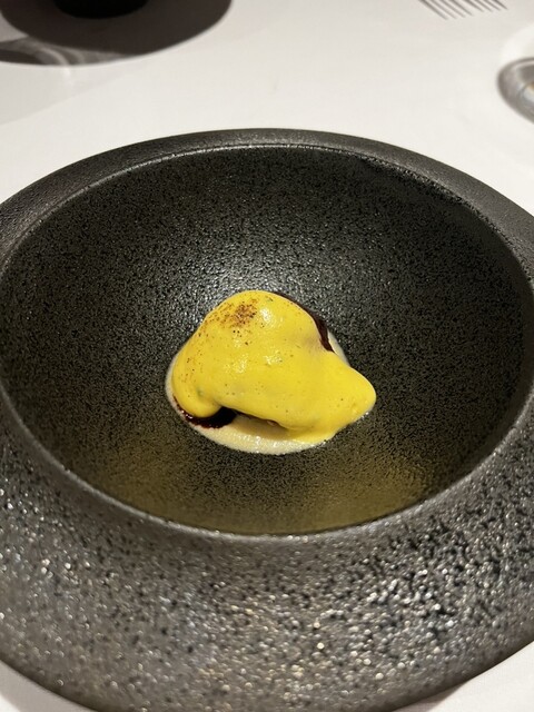 桜鯛と栄螺 ウイキョウは臭みがなく、それぞれの良い部分のみ楽しめる香ばしく歯応えが良い海鮮を使用した料理で、その後に提供していただいたさしみ卵とホワイトアスパラと熟成生ハムは生ハムの程良い塩気と食感が良いホワイトアスパラ、そして濃厚なさしみ卵とチーズの組み合わせがなんともおしゃれで鼻から抜ける感じもたまらないです。