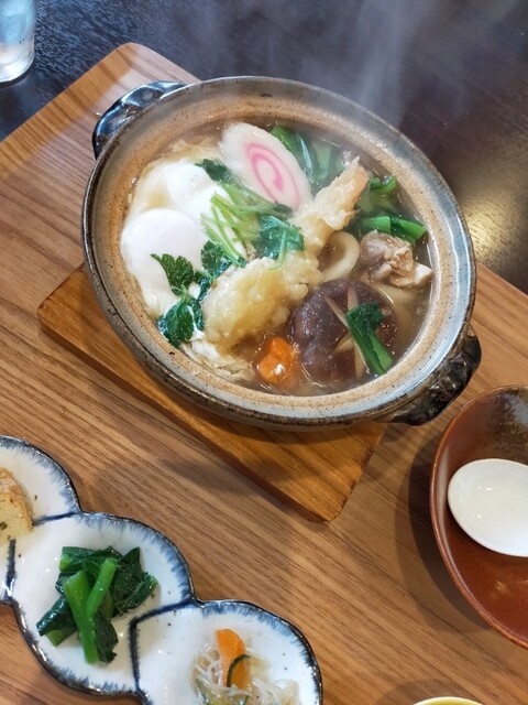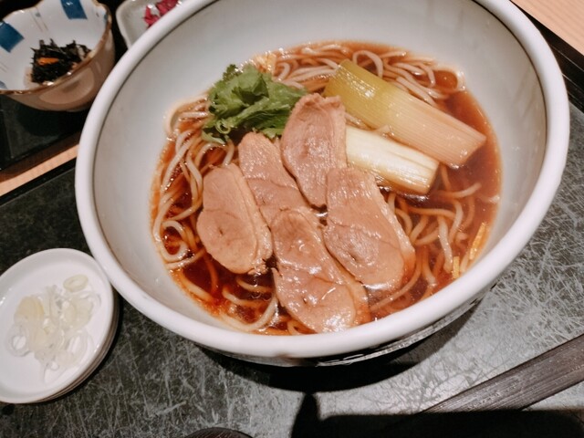 連れはそばと天丼のセット、私は鴨南蛮そばを注文しました。