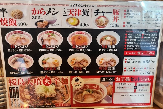 噴火ラーメン(辛系)は現在もあり、辛さに合わせて小噴火、中噴火、大噴火と選択できる。