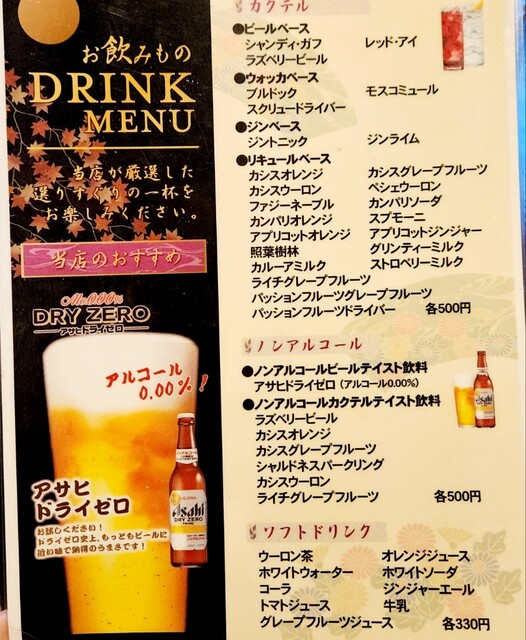 居酒屋メニュー豊富です。ドリンク豊富です。