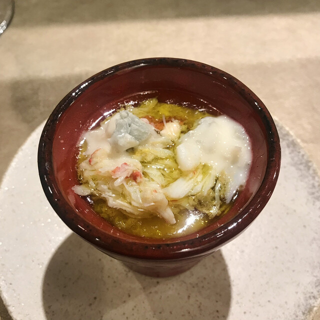 ・岩手の椎茸レディシルクのフリットと北海道産のウニ