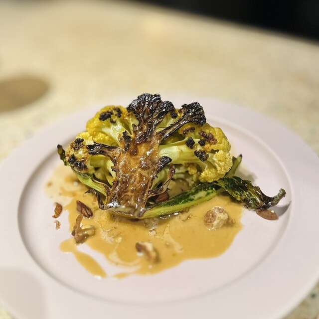 こんがり焼かれたカリフラワーは外側が香ばしく、中心はほどよく柔らかさが残されていて、しっかり満足感のあるボリューム。