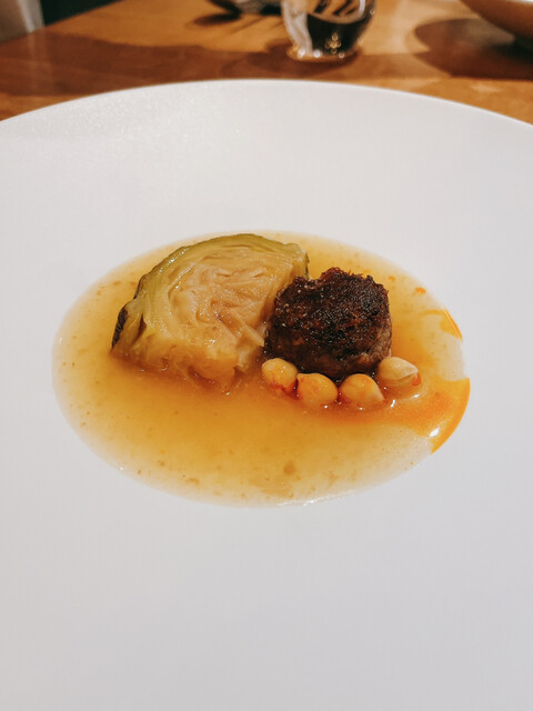 魚・肉のダブルメインのみならず、パエリアやスイーツまでもが2種類登場する品数の豊富なコースは、親しみある優しい味と新しいエッセンスのインパクトとが交差する緩急の効いた内容。ときに味や温度の掛け算が複雑ですが、個人的には全てがツボでした。