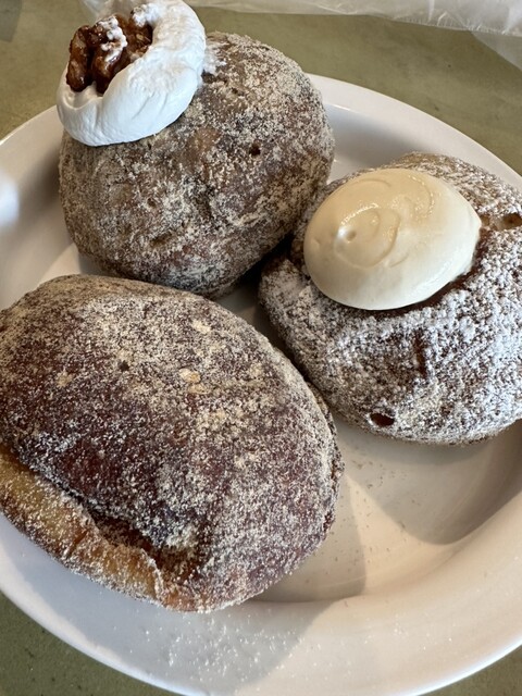 なんじゃこらー〜!やばい店知ったよ。昼にいけたし、幻のドーナツ食い、となりにカフェあります。あまり女子空間高いと恥ずかしいのでいけないんですが、ドーナツなんで、ノーマル、クリーム、あんで勝負、ドーナツ焼きたてなんで、さっくりして、美味い、クリーム⁉️なんじゃこら、めちゃくちゃ美味いやん。はじめて。No.1のパン屋さんやな、素人ながら食ったことない美味さやー。やばい店です‼️昼なんで並んでなかったし、入れました、並んでだら、あきらめましたね‼️