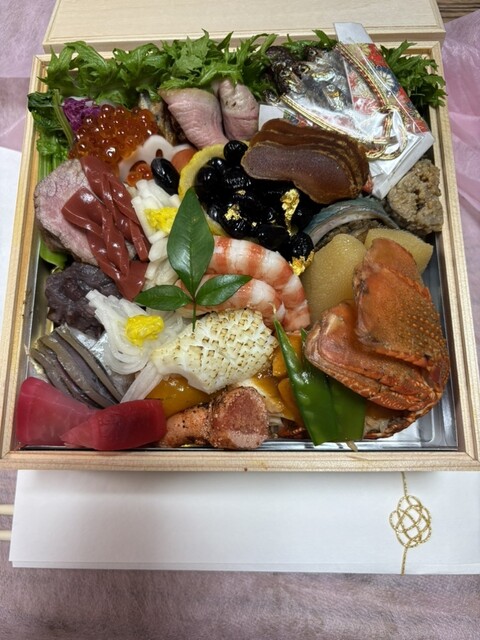 Instagramにて予約をし、大晦日の午後におせちを受け取りに行きました。一折22,000円で、きれいにたくさん詰まっていて、宝石箱のようです。毎年楽しみにしているおせちです。