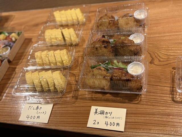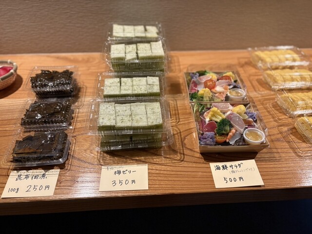 おせちを受け取りに行くと、カウンターにお惣菜が並んでいて、出来たての温かい惣菜もありました。私は、カヌレとだし巻き玉子を買いました。