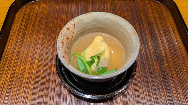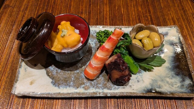 二皿目はいくつか載ってるんだけど、毎回載ってる車海老が実は好き。出汁が染みてて。
