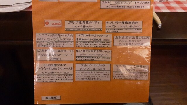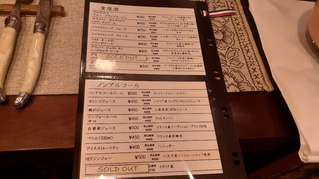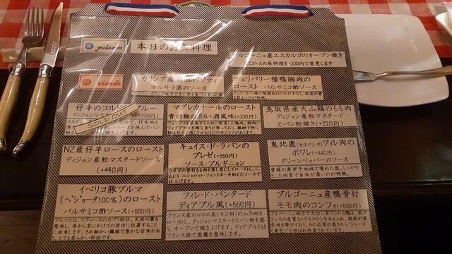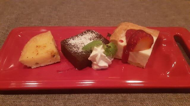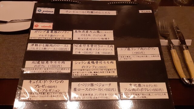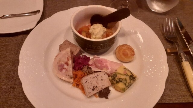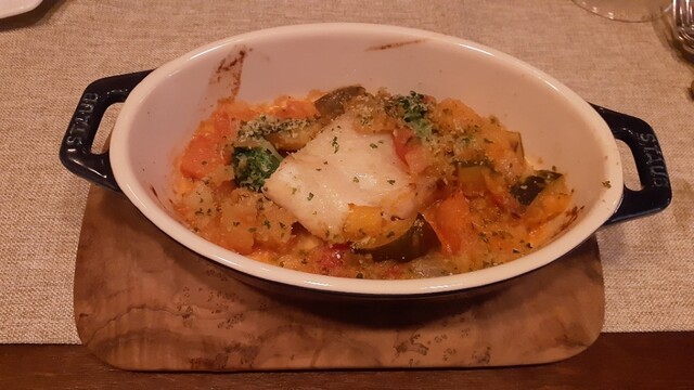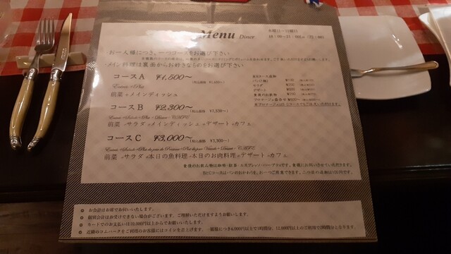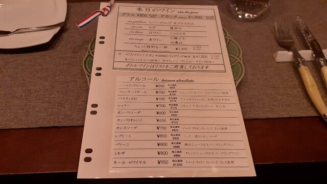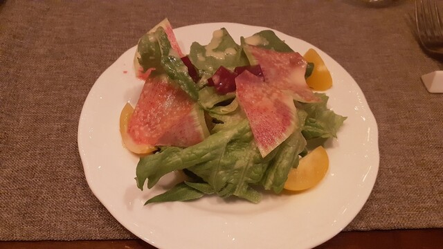3000円で、前菜+魚の料理+サラダ+肉の料理+デザート+ドリンク。パン付き。