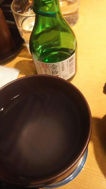 ちびちびつまんで焼酎の蕎麦湯割りを頼みます。のち日本酒浦霞を。