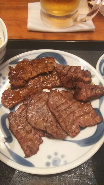 牛タンにはビールでしょう?ボクはトリプルミックスセットで相方もいつものがんこちゃんセット。追加がんこちゃんがサービス価格なんでそれも頼みます。ボクの方には牛タン無いから・・。半分どうぞなんで相方はがんこちゃん祭りです(笑)。