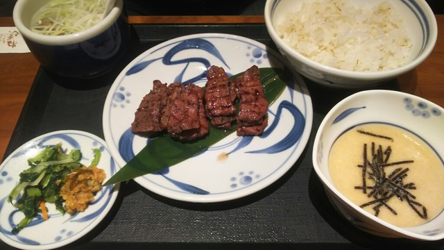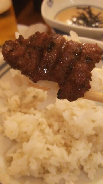 もちろんご飯お代りして二杯目はとろろをかけて。さっき焼鳥ビールしたのに牛タンとろろご飯は別腹です、なんならもう一杯いけそうです(笑)。