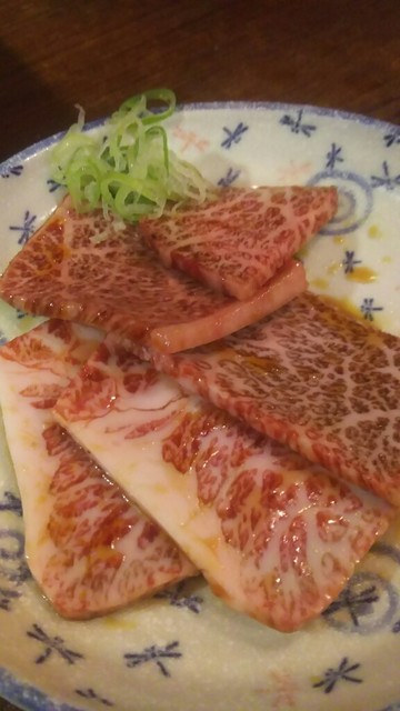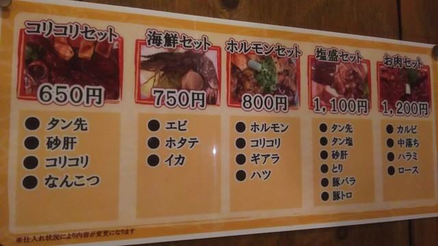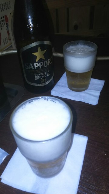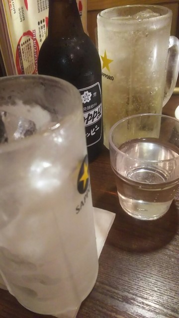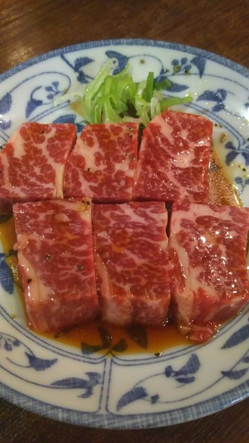 最初の注文は前回と同じ(笑)味噌きゅうりポテトサラダ肉セットをビールで。ホッピーに切り替えた際にお肉を追加、ハラミ・カルビとコリコリセット。セットの中身は~タン先・なんこつ・砂肝・コリコリです。コリコリとは心臓の近くの大動脈、ハツモト・タケノコとも。下処理が大変なんで嫁泣かせ!と言われてるらしい(豆知識・さっき知った)。自宅で大動脈の下処理ってなかなか無いとは思いますが(笑)。食感がよく次も頼もう!と思える一品でしたよ。カルビクッパで〆にします。