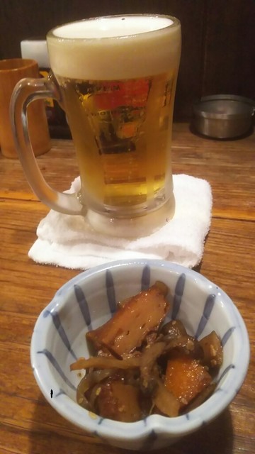 生ビールとお通し。