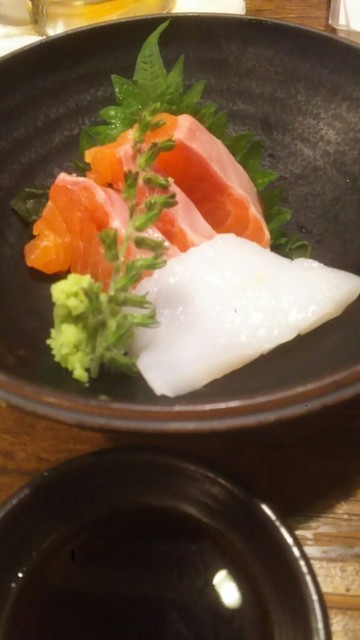 お刺身2種盛り。サーモンとイカ!