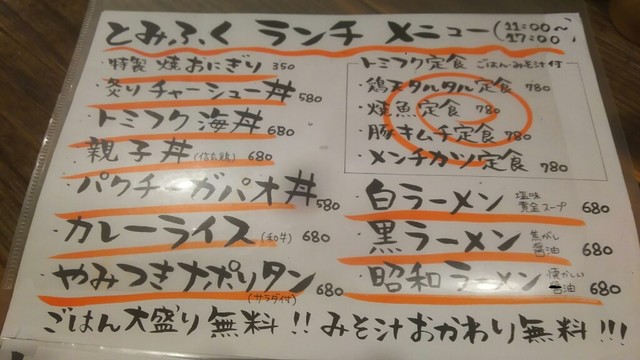 ランチメニュー。