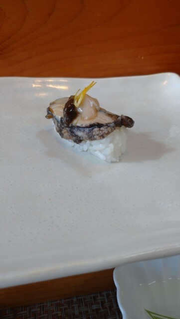 スタートはあわび…仕入れてきたばかりだということで、コリコリの食感にさっぱりとしたソース。いきなりあわび!( ゚Д゚)