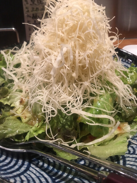 パリパリサラダは目の前に飾ってあったワンタンを細切りにして揚げたものをのせてこれもまた目でも楽しめました。