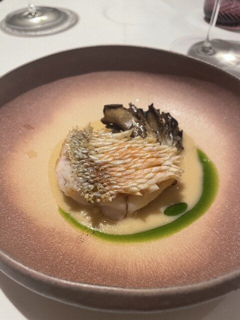 セップ茸(ポルチーニ茸)は春巻きで。ポルチーニがぎっしり詰まっておりすごくいい香り。というかフレンチで春巻きが出てくるのは斬新すぎる。