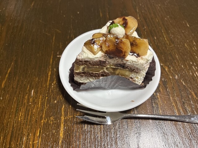 チョコの甘さは、滑らかも丁度良い。チョコスポンジとカスタードでパケナをサンドし さらにたっぷりのバナナとチョコソースをトッピングしている。