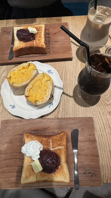 小倉トーストはバターの量が絶妙で、甘さと塩気のバランスがちょうどいい。オムレツサンドはふわっとした卵に、カラシマヨとタルタル(ターズ)がしっかりハマっていて満足感高め。これはリピート確定。