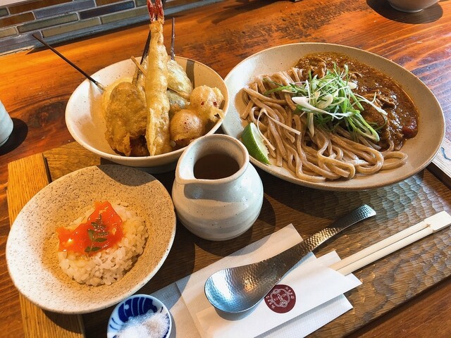 こだわりのあるカレーうどんで、最後まで味変で楽しめます。見た目はもちろんのこと、天ぷらもサクサクで、麺もコシがありツルツルです。最後は残ったカレーをご飯にかけて、、、最後までお客さんを楽しませる工夫があり、とても良いお店だと思います。