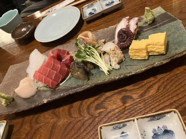 トラフグ刺身/鮑蒸し/海老蒸し/タコ煮/イカのクチバシ/秋刀魚ガリ海苔巻き