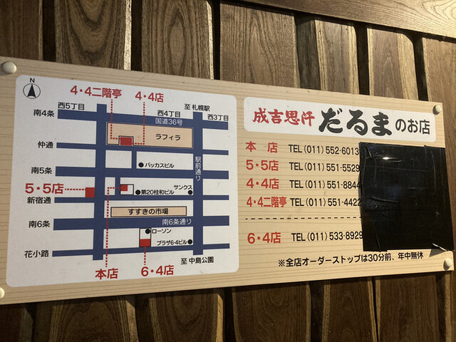 札幌市営地下鉄南北線 薄野(すすきの)駅から徒歩5分程度。