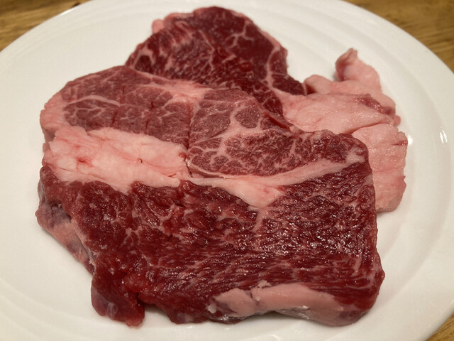 上肉は脂のトロける旨さを楽しむために、軽く両面に火を通したら、ハサミで食べやすい大きさにカットして、仕上がりを待ちます!!