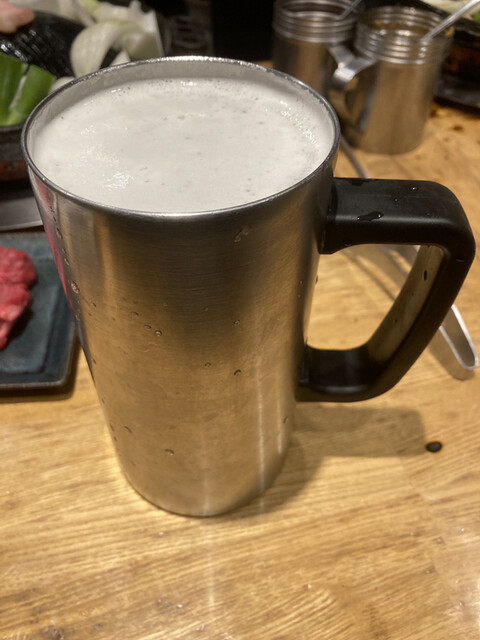 まずは真空二層ジョッキでキンキンキンの生ビールをプハっと流し込みます!