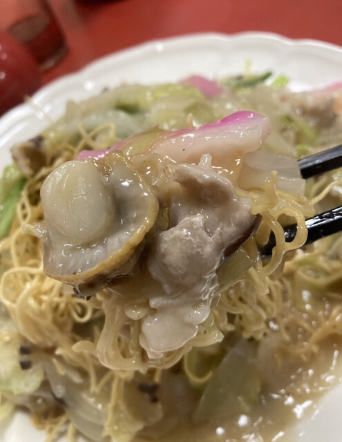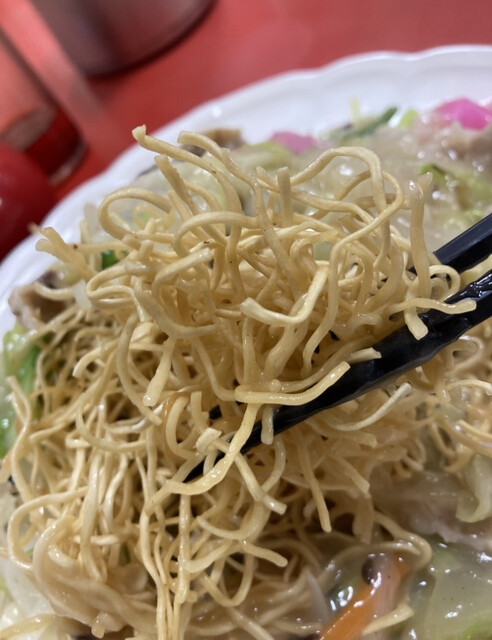 甘めの具沢山の餡がたっぷりに、ここの特製皿うどんは「麺」がスゴく旨い!!