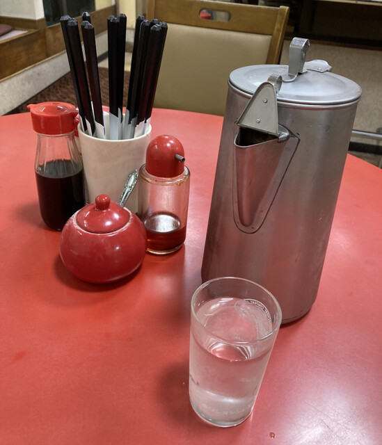 ステンレスのピッチャーは汗をかく程のキンキンのお冷。そして深々とお辞儀をされてのご提供です。