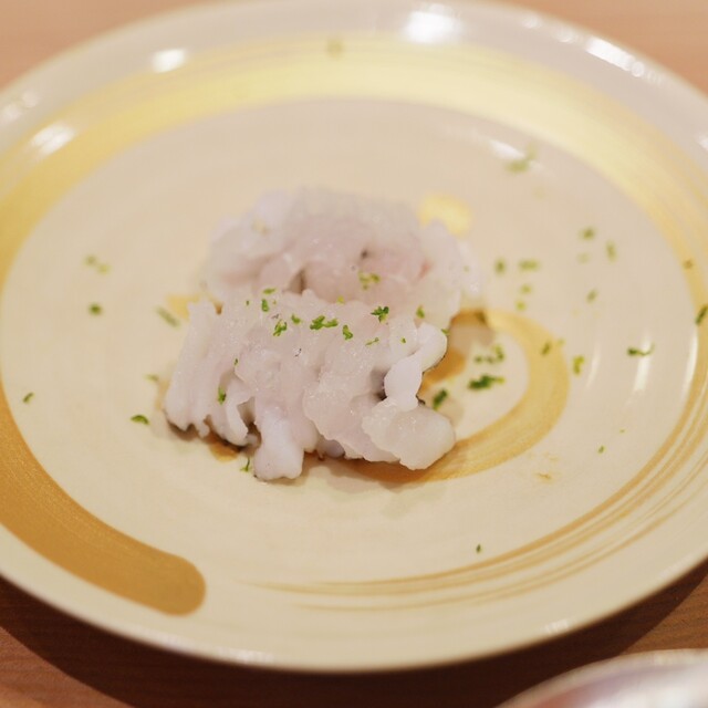 目の前で大将が職人技で魚をさばくのだが、骨切りの音が食欲を掻き立てる。