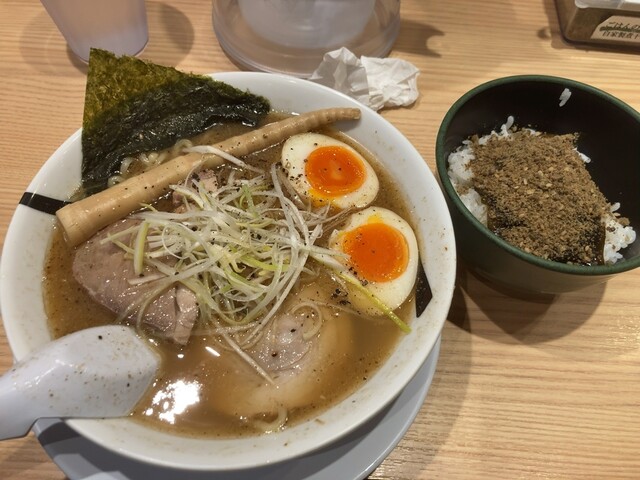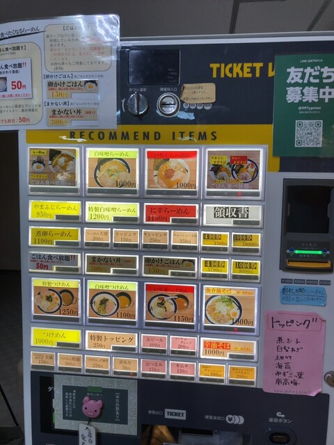 今日もやまふじラーメン950円、煮卵トッピング150円、ご飯100円を購入。