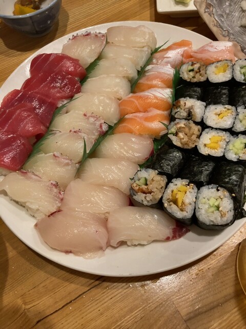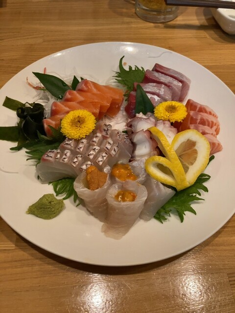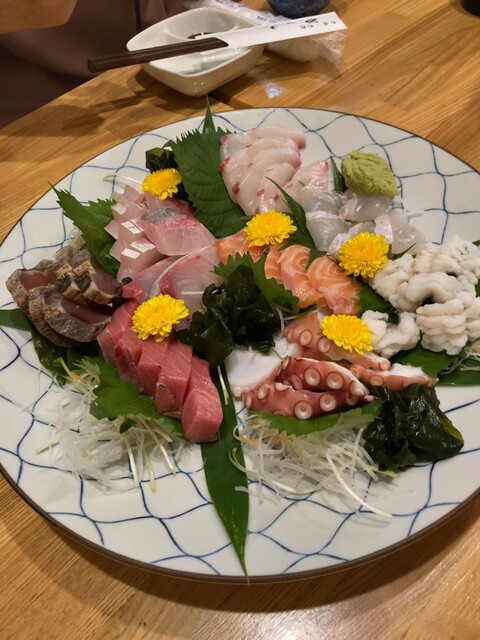 9種類?の豪華なお刺身をつまみながら、ビールで乾杯。