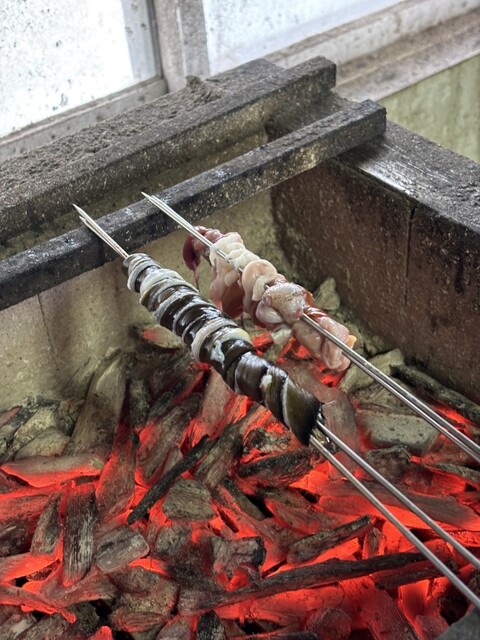 お客さんの好みに合わせて自由自在に高温の炭を操り、お水をかけて焼き加減を調整しながら焼かれていきます。