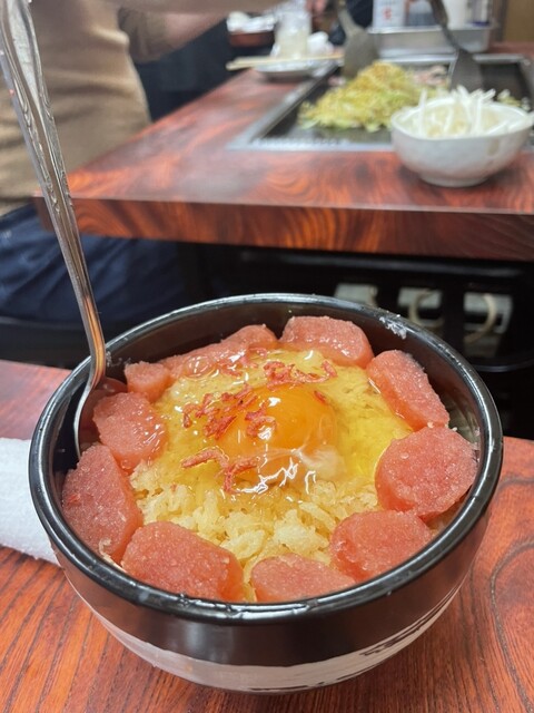 お好み焼きは豚肉天(930円)、明太天(1100円)を頂きました。こちらも自分で作るタイプ。