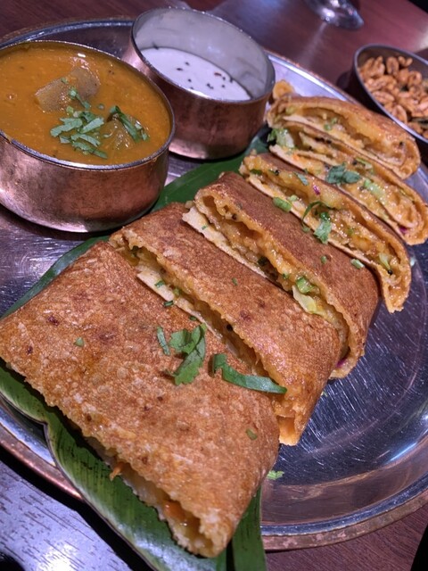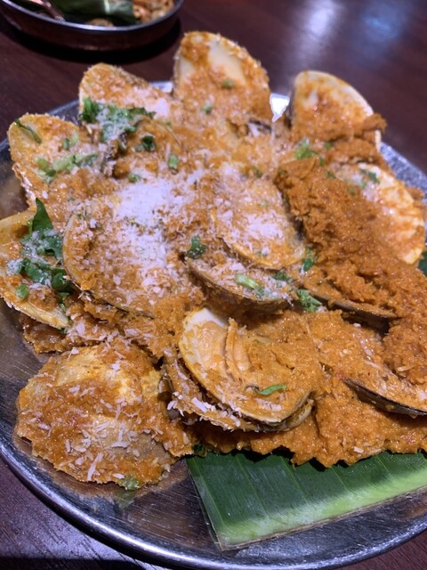 ドーサに野菜が詰まってるものに、ココナッツのソースをつけていただくのが一番美味しかったのと、はまぐりにスパイスソースがたっぷりかかっているのがとても珍しいなと思いました。