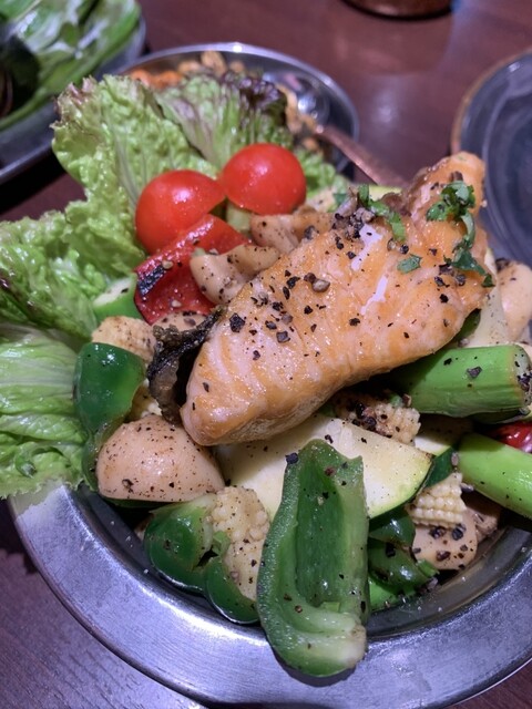 スープもサラダもメインも鯛や鮭やはまぐりといったシーフードを使っていて、最後だけチキンとマトンでお肉出てきました。