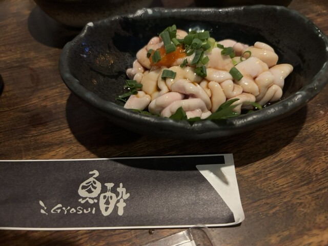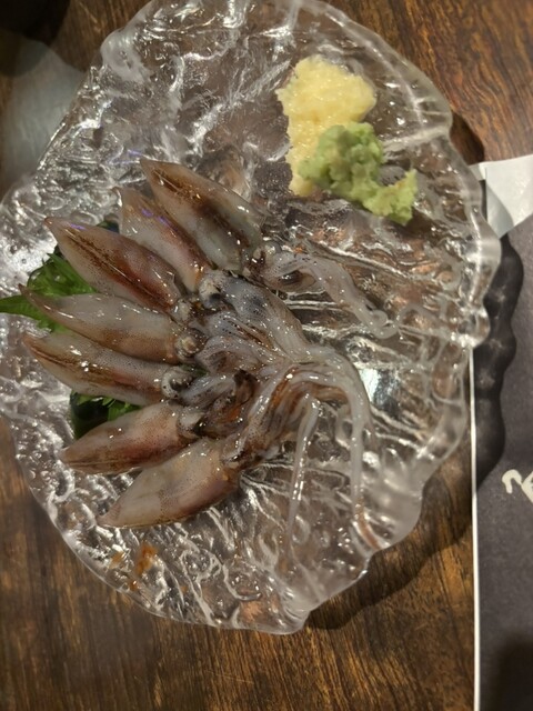 特に生ホタルイカ刺しは絶品。甘くて濃厚。安芸虎と一緒にいただきました。