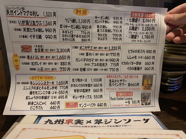 ランチに訪れた翌日に気になっていた刺身を食べに伺いました。新年の土曜だからか、予約の団体と飛び込みのお客さんでいっぱい。活気がありました。