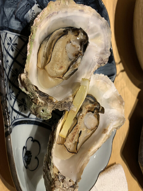 今日はかんぱちがあったのでお刺身盛り合わせ三種盛り、魚介類メインにしようとのことでブリ焼きと生牡蠣もいただきました。生牡蠣はいつもより肉厚で濃厚。ミネラルたっぷり。日本酒と共に堪能。
