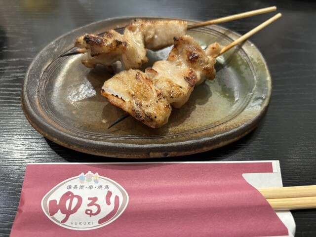 大ぶりな奥三河どりが美味しい「香雅」さんの姉妹店「ゆるり」さん。備長炭で串・焼鳥を焼いています。店の雰囲気もよく美味しくいただきました。