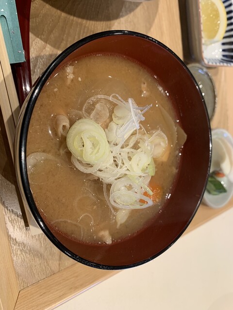 そして前の店からずっと名物の豚汁。ごろごろの野菜、肉厚の豚が煮込まれていてとても美味しくいただきました。どんぶり、定食が種類多くて、定食もある。