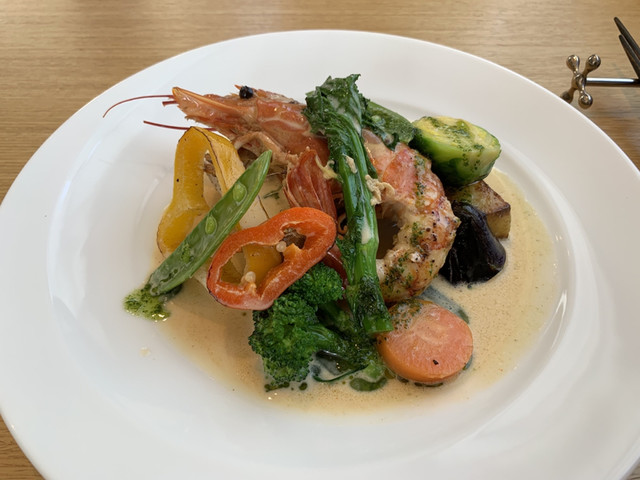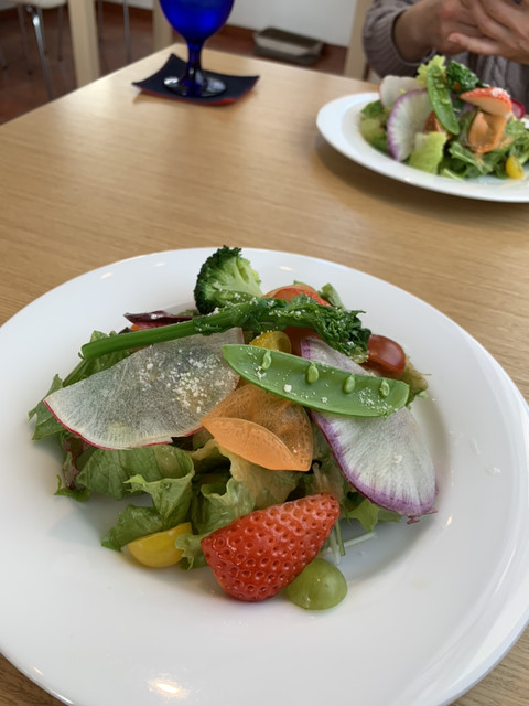 サラダのお野菜の旨さ半端ない!ドレッシングも季節で変わるそうですがお野菜の味に寄り添っていてとても美味しい!ぶどうもイチゴもめちゃくちゃ甘くて良いアクセントになっていました。