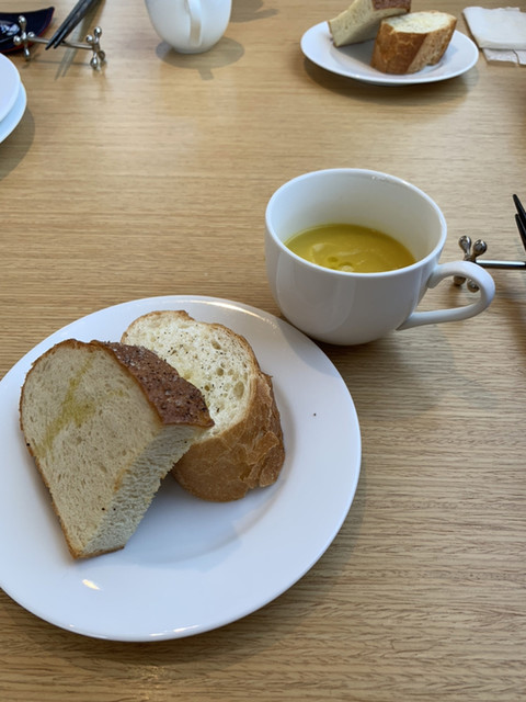 続いて、カボチャのスープ フォカッチャとバケット